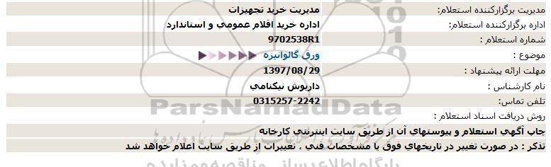 اداره برگزارکننده استعلام: اداره خرید اقلام عمومی و استاندارد