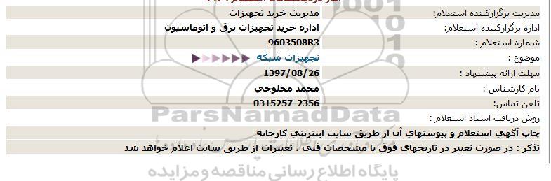 استعلام تجهیزات شبکه, استعلام ,استعلام تجهیزات شبکه