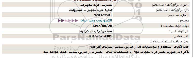 استعلام الکترو پمپ پمپ ایران , استعلام , استعلام الکترو پمپ پمپ ایران
