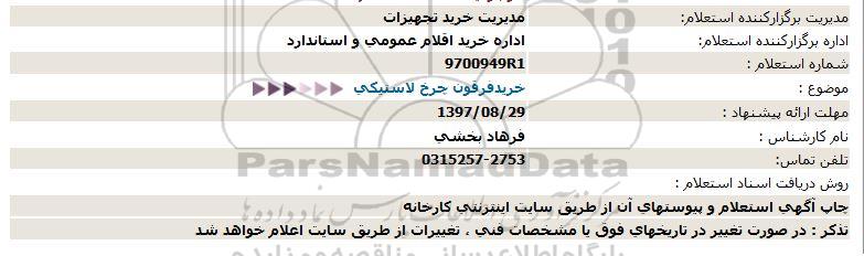 اداره برگزارکننده استعلام: اداره خرید اقلام عمومی و استاندارد