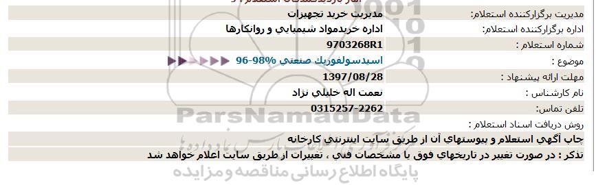 اداره برگزارکننده استعلام:  اداره خرید مواد شیمیایی و روانکارها