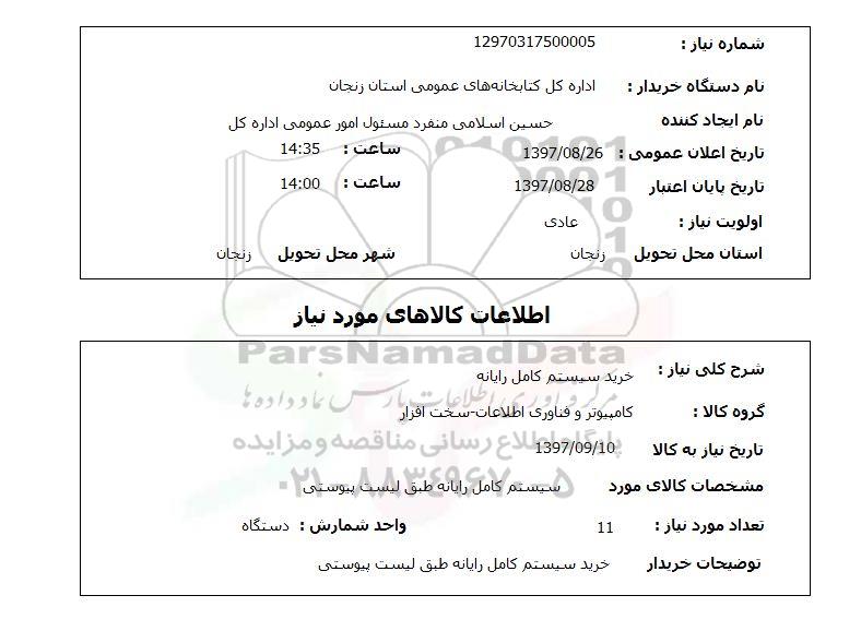 نام دستگاه خریدار : اداره کل کتابخانه های عمومی استان زنجان