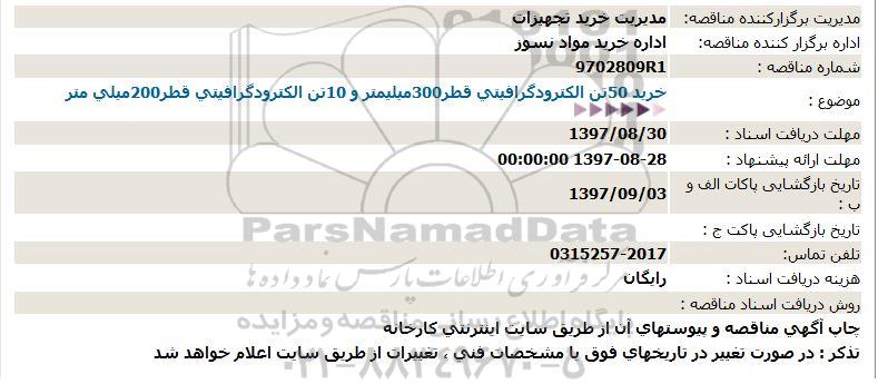 استعلام خرید 50 تن الکترود گرافیتی قطر 300 میلیمتر..., استعلام , استعلام خرید 50 تن الکترود گرافیتی قطر 300 میلیمتر...