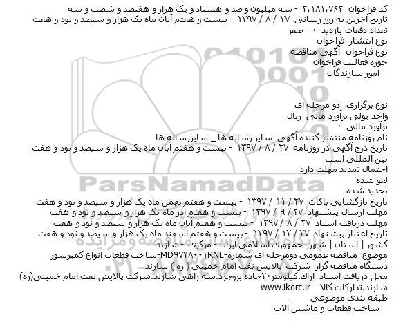 موضوع مناقصه عمومی دومرحله ای شمارهRNL-۹۷۴۸۰۰۱-MDساخت قطعات انواع كمپرسور