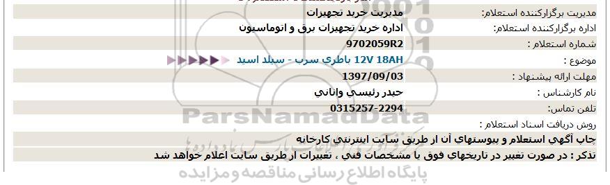 اداره برگزارکننده استعلام: اداره خرید تجهیزات برق و اتوماسیون