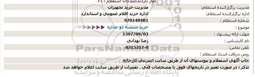 اداره برگزارکننده استعلام: اداره خريد اقلام عمومی و استاندارد
