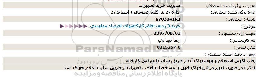 موضوع : خرید 3 ردیف اقلام کارگاههای اقتصاد مقاومتی