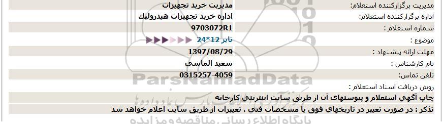 اداره برگزارکننده استعلام: اداره خرید تجهیزات هیدرولیک