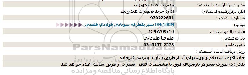 اداره برگزارکننده استعلام: اداره خرید تجهیزات هیدرولیک