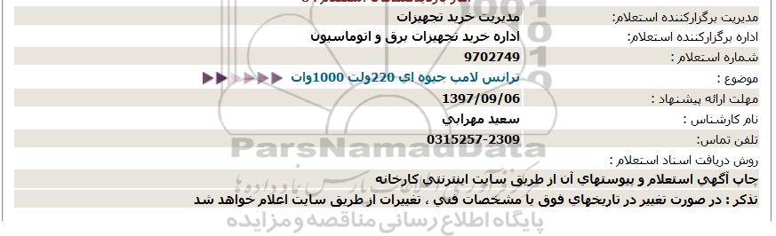 اداره برگزارکننده استعلام: اداره خرید تجهیزات برق و اتوماسیون