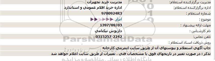 اداره برگزارکننده استعلام: اداره خرید اقلام عمومی و استاندارد