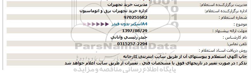 اداره برگزارکننده استعلام: اداره خرید تجهیزات برق و اتوماسیون