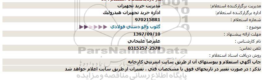 استعلام گلوب والو دستی فولادی , استعلام ، استعلام گلوب والو دستی فولادی