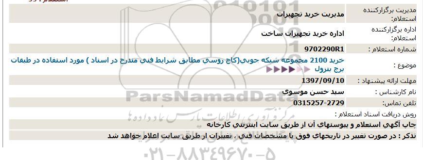 موضوع :خرید 2100 مجموعه شبکه جوبی(کاج روسی مطابق شرایط فنی مندرج در اسناد ) مورد استفاده در طبقات برج بنزول