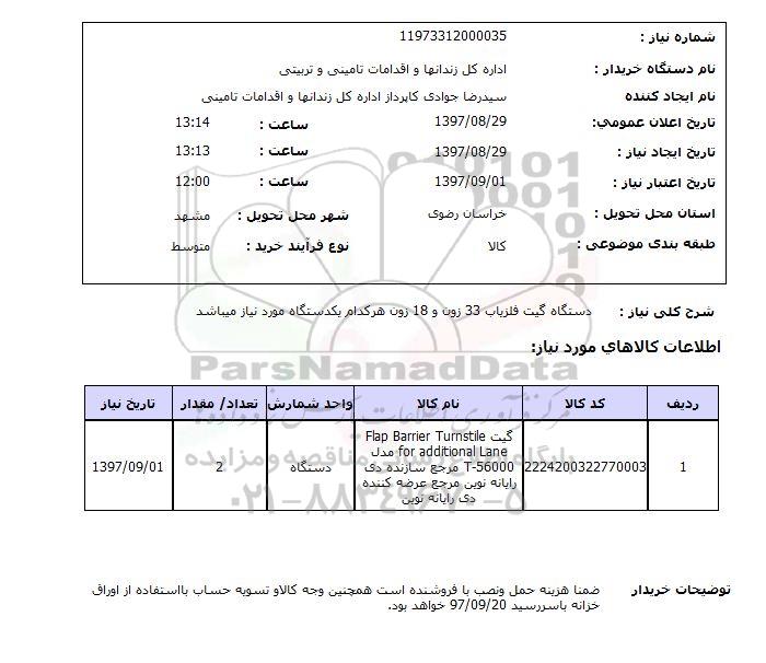 شرح کلی نیاز: دستگاه گیت آشکار ساز فلز 33 زون و 18 زون هر کدام یک دستگاه مورد نیاز است.