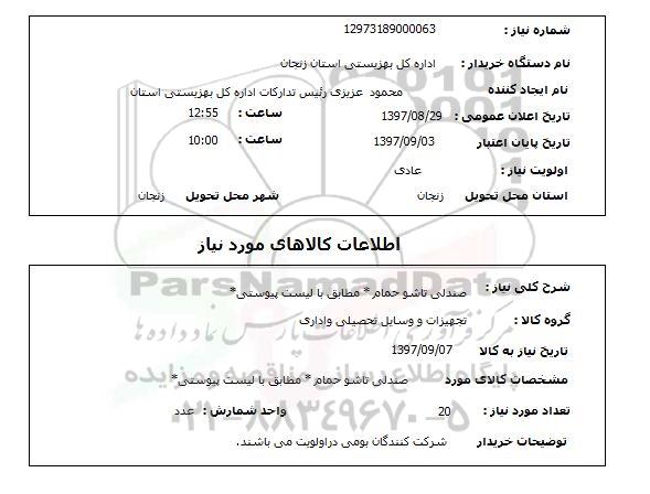 نام دستگاه خریدار: اداره کل بهزیستی استان زنجان