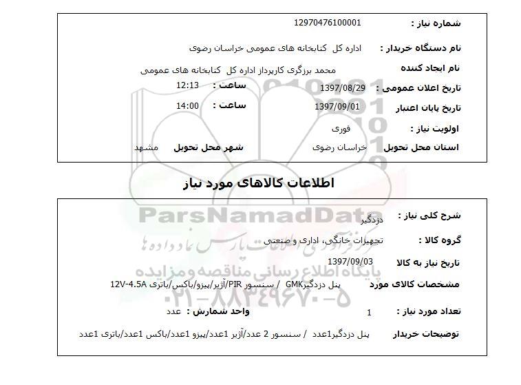 نام دستگاه خریدار: اداره کل کتابخانه های عمومی خراسان رضوی