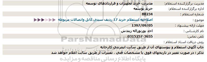 موضوع : اصلاحیه استعلام خرید 17 ردیف سینی کابل و اتصالات مربوطه