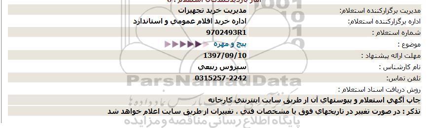 اداره برگزارکننده استعلام: اداره خرید اقلام عمومی و استاندارد