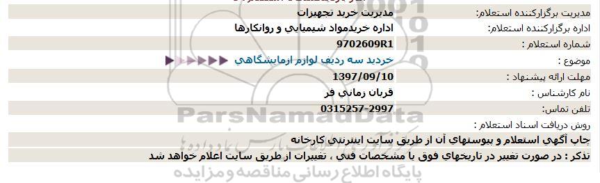 موضوع : خرید سه ردیف لوازم ازمایشگاهی