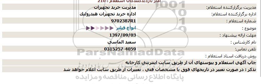 اداره برگزارکننده استعلام: اداره خرید تجهیزات هیدرولیک
