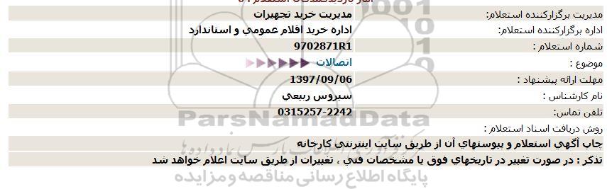 اداره برگزارکننده استعلام: اداره خرید اقلام عمومی و استاندارد