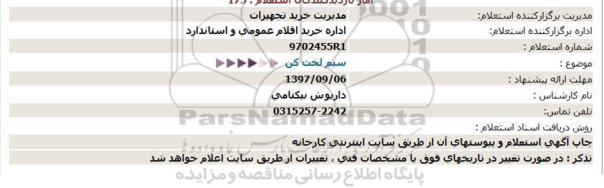 اداره برگزارکننده استعلام:  اداره خرید اقلام عمومی و استاندارد