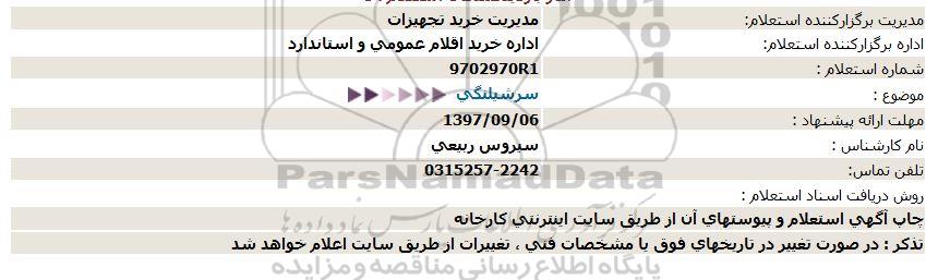 اداره برگزارکننده استعلام:     اداره خرید اقلام عمومی و استاندارد