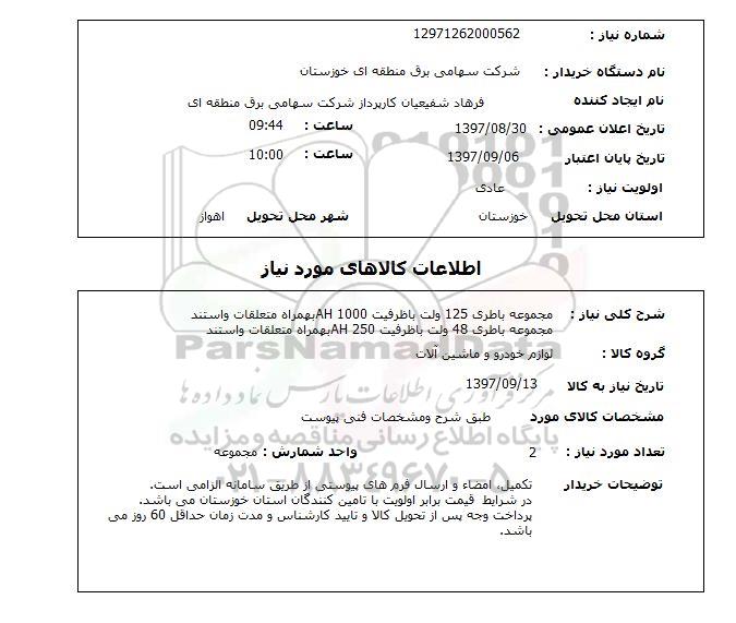 نام دستگاه خریدار : شرکت سهامی برق منطقه ای خوزستان