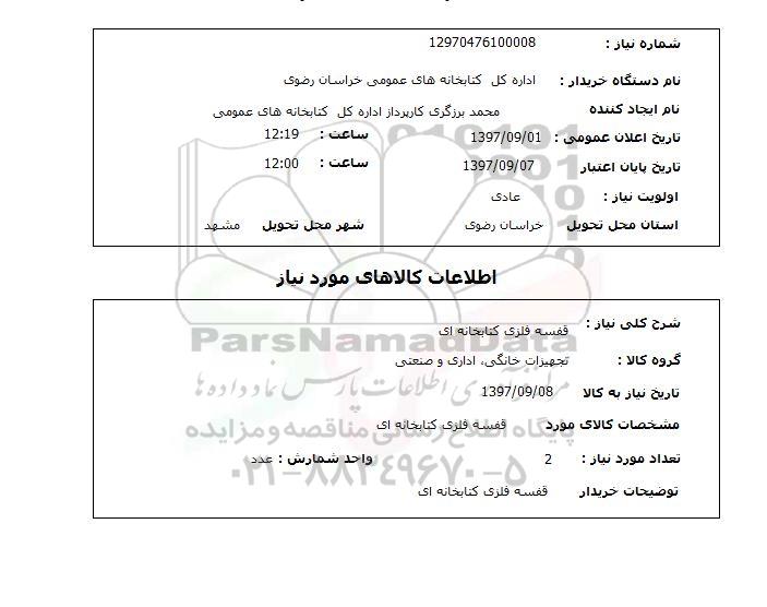 نام دستگاه خریدار :   اداره کل کتابخانه های عمومی خراسان رضوی