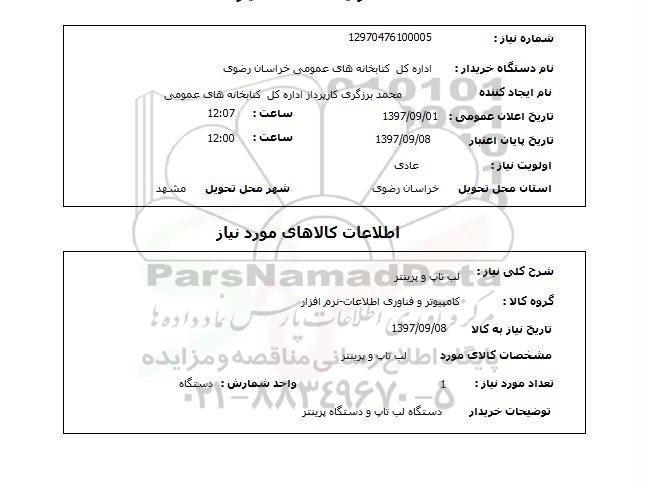 نام دستگاه خریدار : اداره کل کتابخانه های عمومی خراسان رضوی