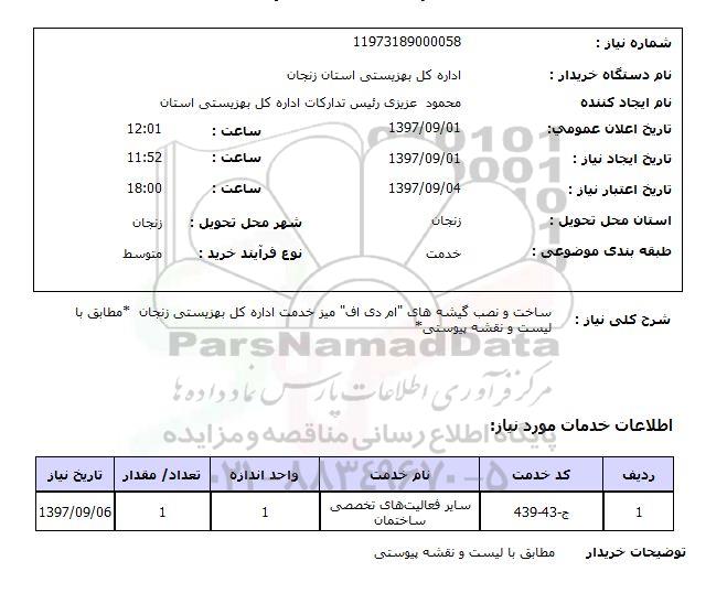 شرح کلی نیاز: ساخت و نصب گیشه های «ام دی اف» میز خدمت اداره کل بهزیستی زنجان* مطابق با لیست و نقشه پیوستی*