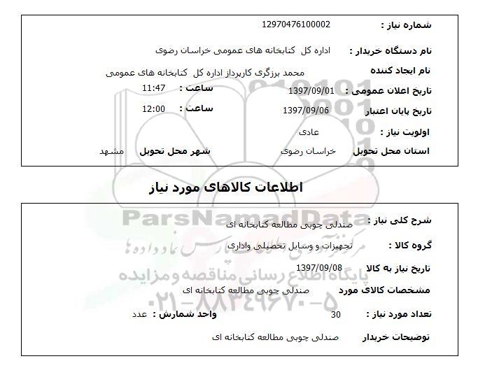 نام دستگاه خریدار: اداره کل کتابخانه های عمومی خراسان رضوی