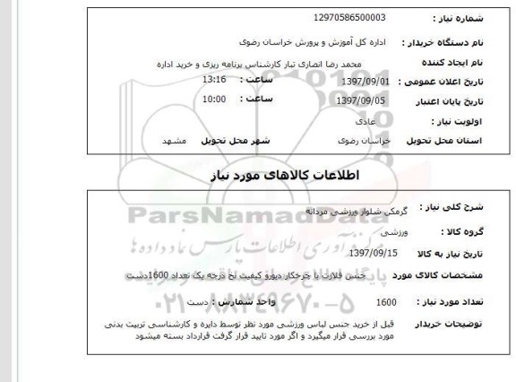 نام دستگاه خریدار :   اداره کل آموزش و پرورش خراسان رضوی