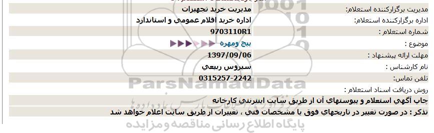 شماره استعلام : 9703110R1