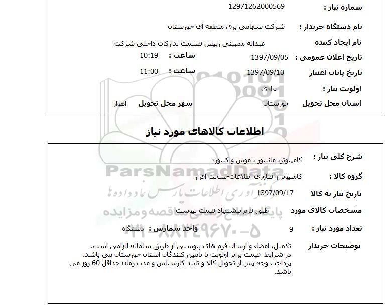 شماره نیاز 12971262000569