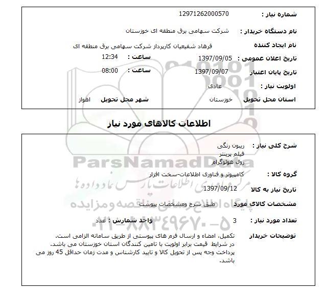 نام دستگاه خریدار: شرکت سهامی برق منطقه ای خوزستان