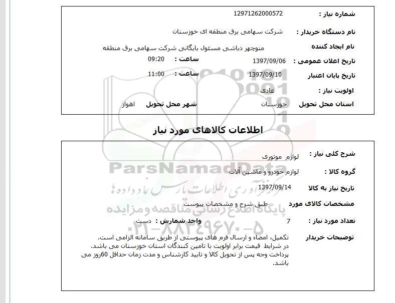 نام دستگاه خریدار: شرکت سهامی برق منطقه ای خوزستان