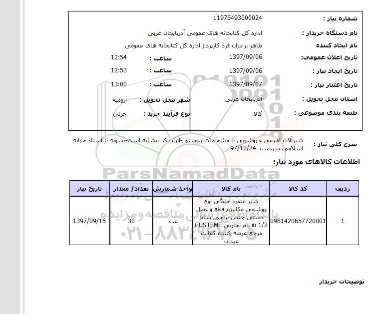 نام دستگاه خریدار :   اداره کل کتابخانه های عمومی آذربایجان غربی