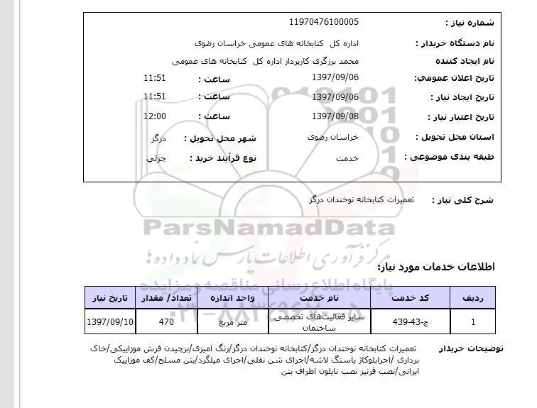 نام دستگاه خریدار: اداره کل کتابخانه های عمومی خراسان رضوی