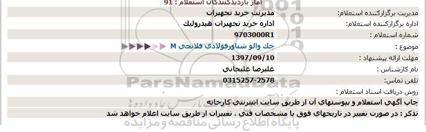استعلام چک والو شناور فولادی فلانچی, استعلام ، استعلام چک والو شناور فولادی فلانچی