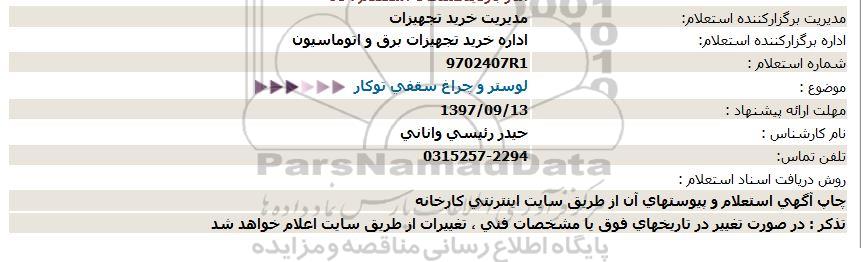 استعلام لوستر و چراغ سقفی توکار , استعلام, استعلام لوستر و چراغ سقفی توکار