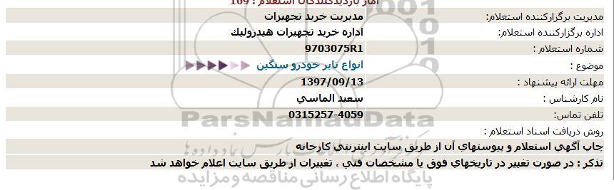 اداره برگزارکننده استعلام: اداره خرید تجهیزات هیدرولیک