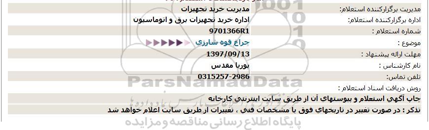 اداره برگزارکننده استعلام: اداره خرید تجهیزات برق و اتوماسیون