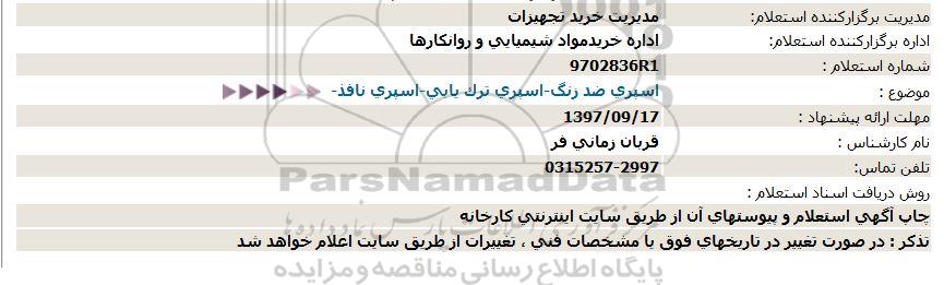 اداره برگزارکننده استعلام: اداره خریدمواد شیمیایی و روانکارها