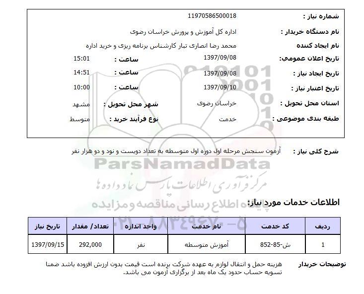 نام دستگاه خریدار : اداره کل آموزش و پرورش خراسان رضوی
