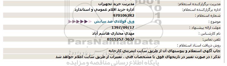 اداره برگزارکننده استعلام: اداره خرید اقلام عمومی و استاندارد