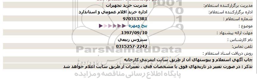 اداره برگزارکننده استعلام: اداره خرید اقلام عمومی و استاندارد