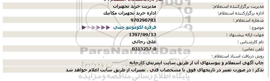 اداره برگزارکننده استعلام: اداره خرید تجهیزات مكانیک