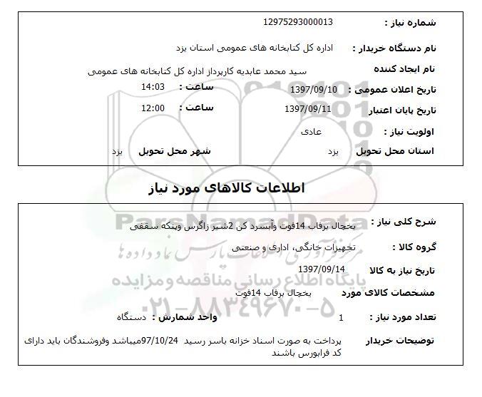نام دستگاه خریدار: اداره کل کتابخانه های عمومی استان یزد